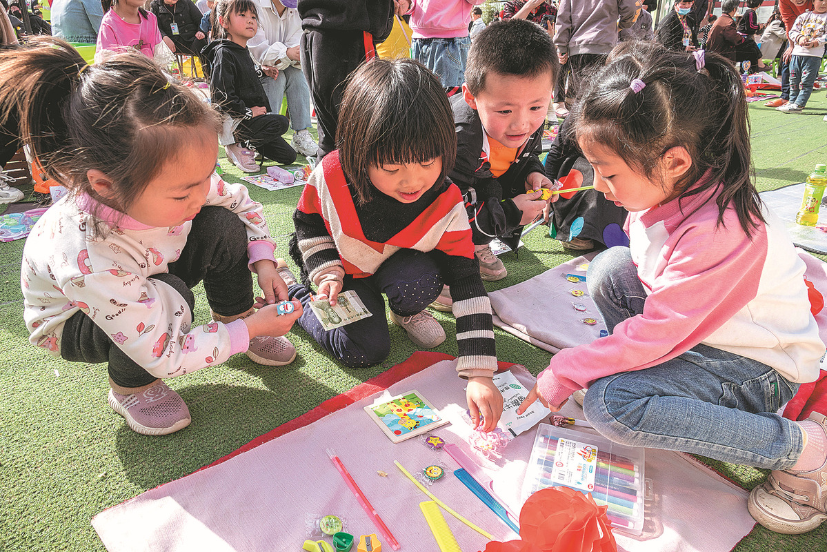 Children exchange used items at a kindergarten in Huaxian county, Henan province. [Photo by Wang Zirui/For China Daily]