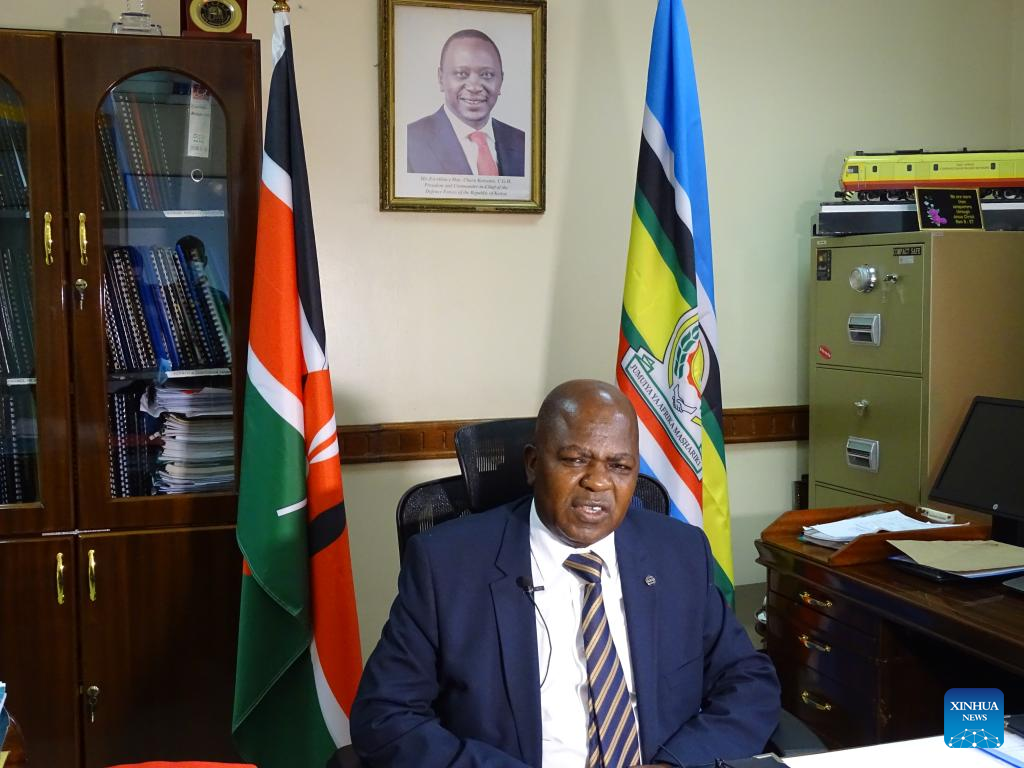 Philip Jamuhuri Mainga, managing director of state-owned enterprise Kenya Railways Corporation, speaks during an interview with Xinhua in Nairobi, capital of Kenya, July 28, 2022. (Xinhua/Bai Lin)