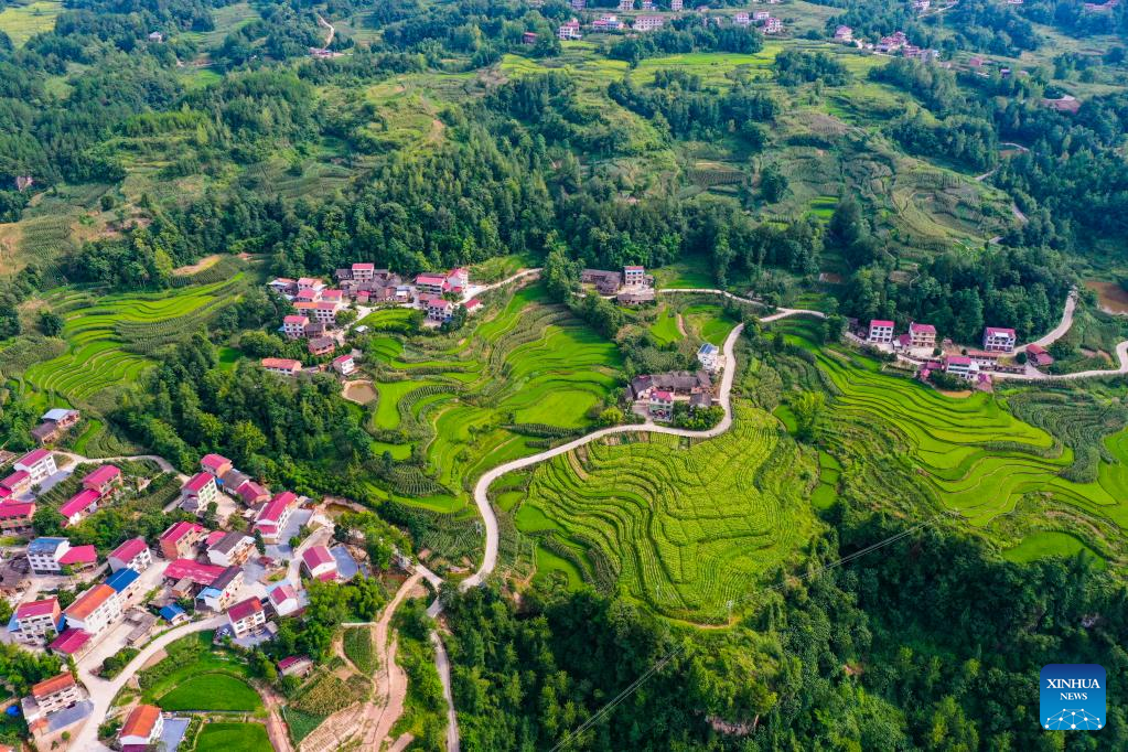Aerial photo taken on Aug. 2, 2022 shows a view of Bayi Village in Wanzhou District of southwest China's Chongqing. (Xinhua/Wang Quanchao)