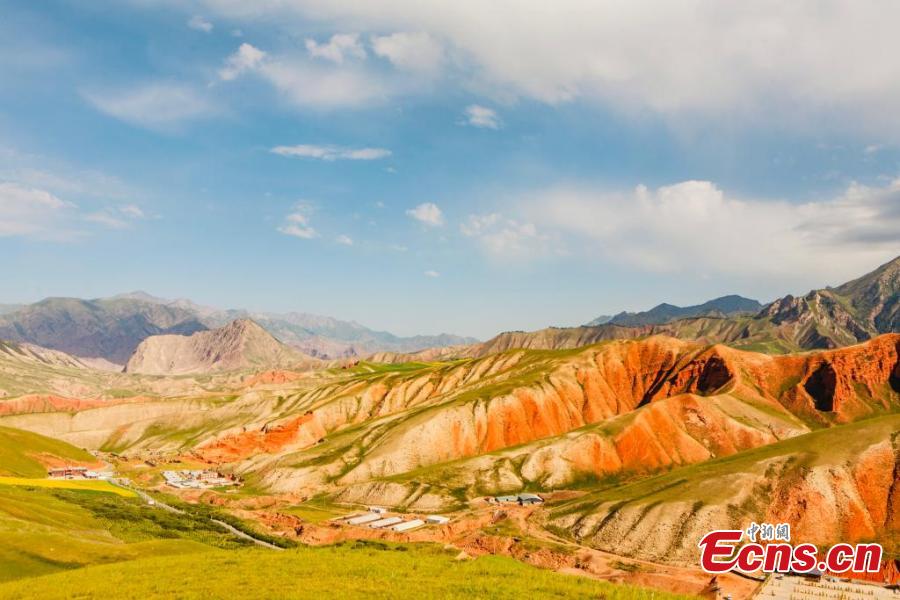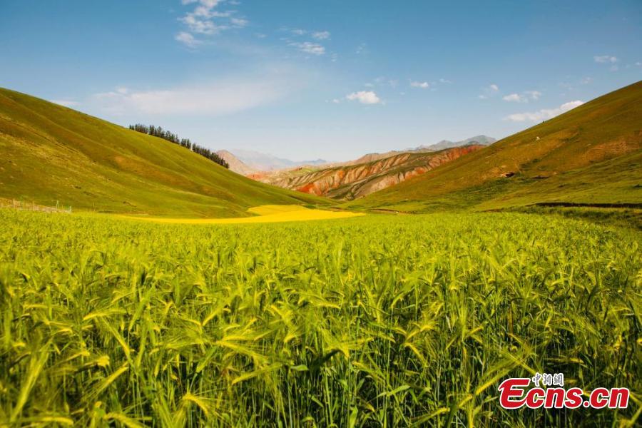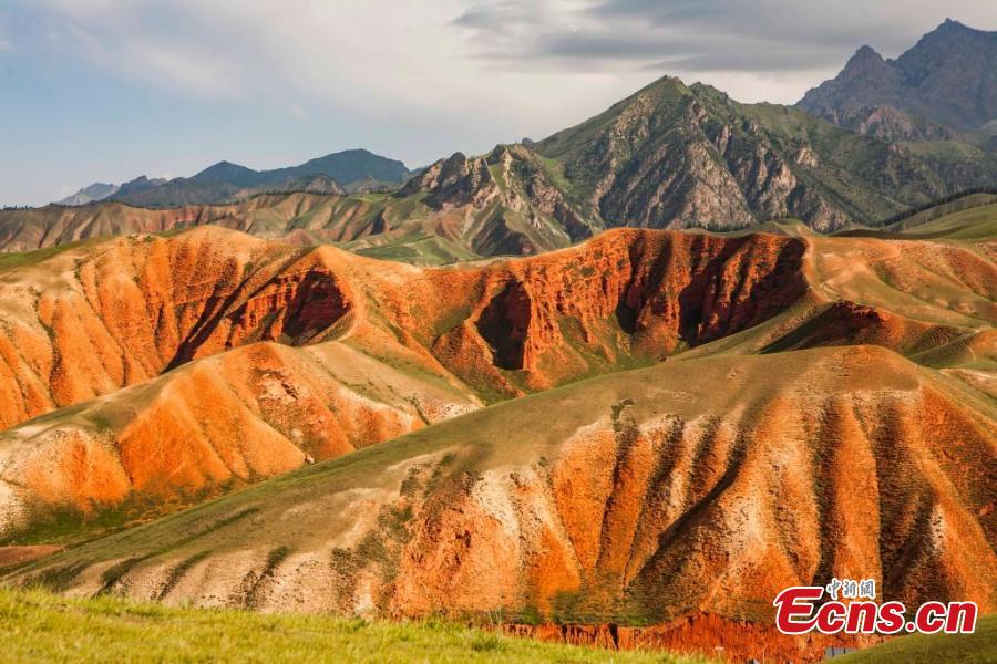Magnificent summer scenery of Zhuo'er Mountain, which features Danxia landform, in Qilian county of Haibei Tibetan autonomous prefecture, northwest China's Qinghai Province. (Photo: China News Service/Zhao Haimei)