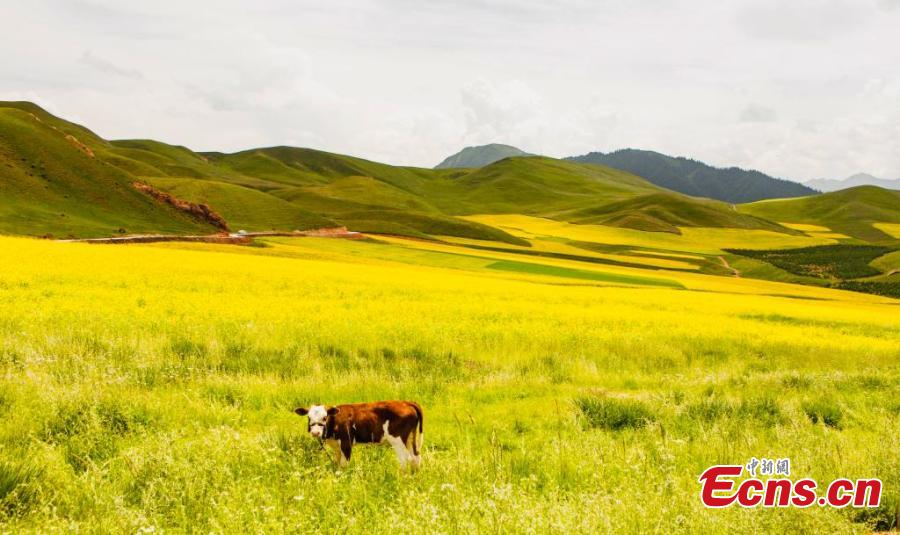 - Scenery of cole flower fields in Qinghai