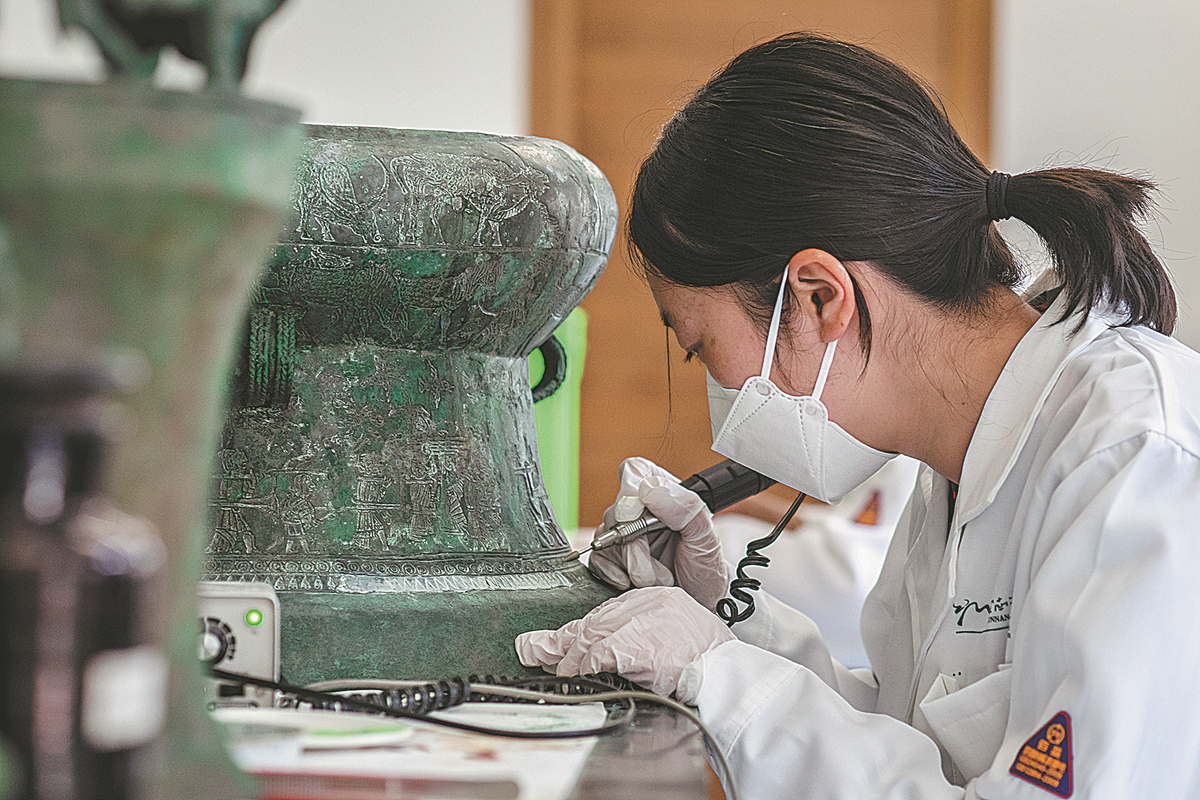 Bronzeware is repaired at the Yunnan Museum in Kunming, Yunnan province. HU CHAO/XINHUA