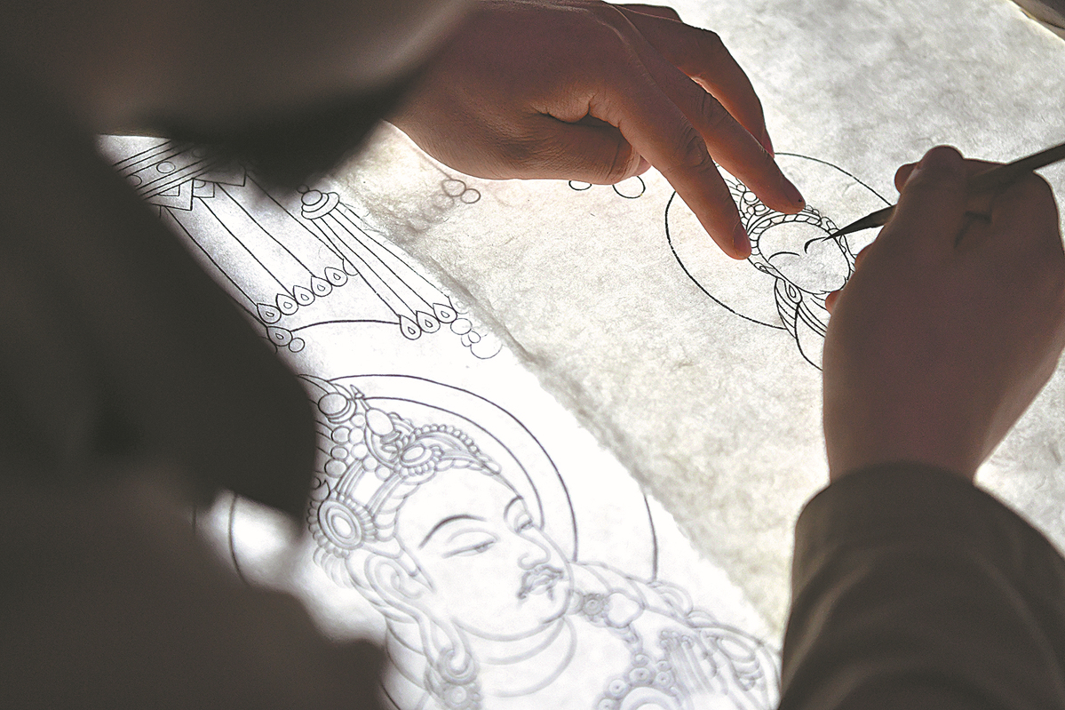 Murals are copied at the Mogao Grottoes in Dunhuang, Gansu province. CHEN BIN/DU ZHEYU/XINHUA