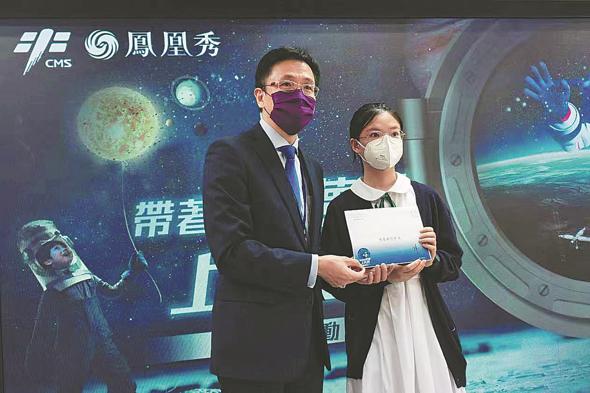 Chen, a Form 3 student, or ninth-grader, at Pui Kiu Middle School in North Point, Hong Kong, learned in June about a national campaign of writing to astronauts in the Tiangong space station in a campaign called "Bring my dream to Tiangong".