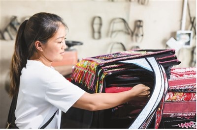Photo shows Yang Li, a relocated villager, who works at an embroidery factory in Kedu township of Pingtang county, southwest China’s Guizhou Province. (Xinhua/Ou Dongqu)