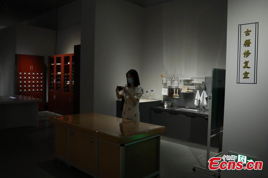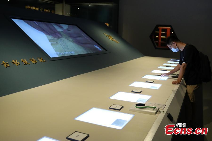 Visitors view restored books in the Tianlu Linlang collection during a preview of the exhibition "Tianlu Linlang", a precious literary collection, at the National Library of China, Aug. 3, 2022. (Photo: China News Service/Jiang Qiming)