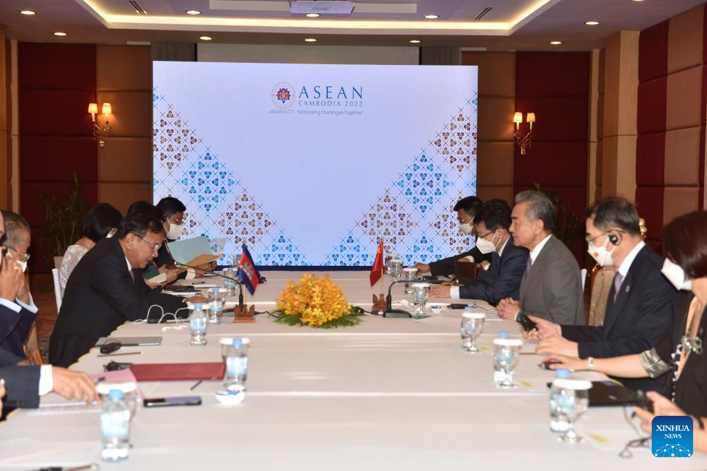 The two sides exchanged views on strengthening coordination over regional affairs. Wang said China supports Cambodia in fulfilling its responsibility as the rotating ASEAN chair for 2022 and holding meetings of foreign ministers on East Asia cooperation.