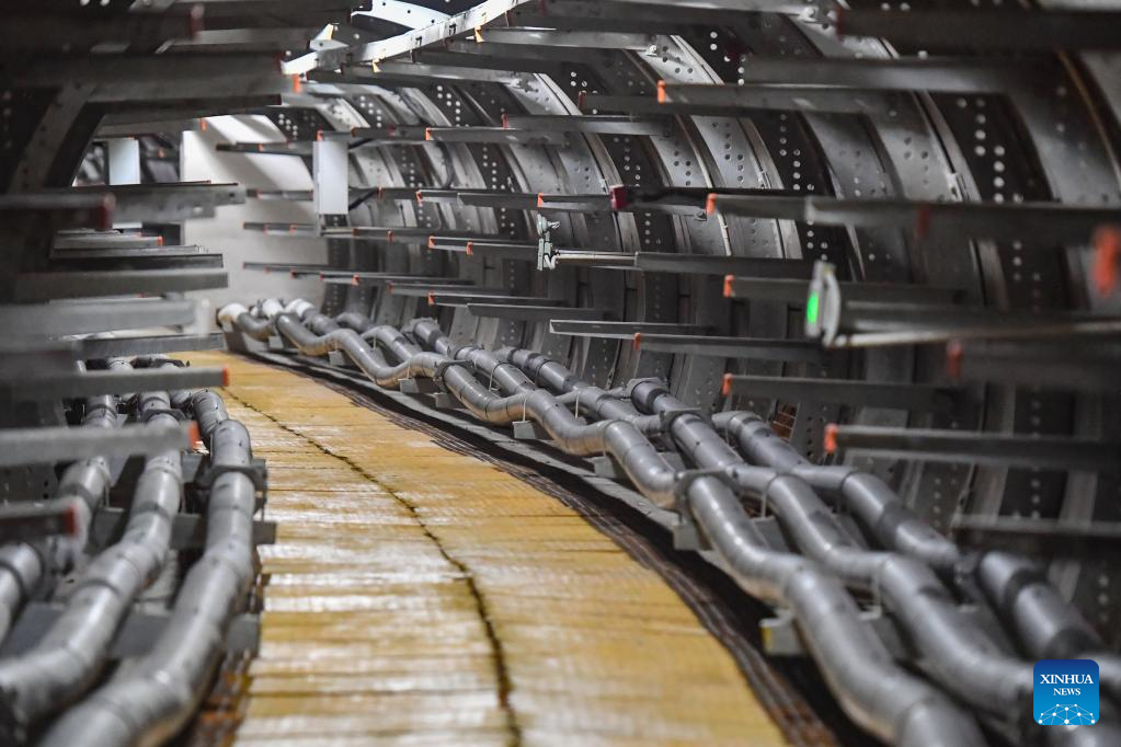 Many power supply lines in the newly-built Wanjiali Road power tunnel have been laid and put into use, transmitting electric energy for the areas along the line. (Xinhua/Chen Zeguo)
