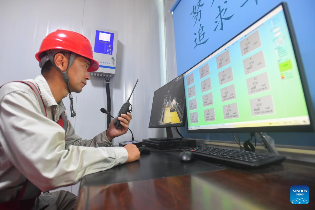 A staff member checks the cable through the monitoring system of Wanjiali Road power tunnel in Changsha, central China's Hunan Province, Aug. 4, 2022. Changsha has been experiencing high temperatures recently, bringing the peak of summer electricity consumption.