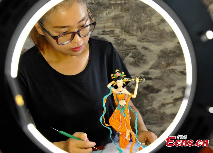 Folk artist He Xiuping makes a dough sculpture of ancient beauty Yang Yuhuan of the Tang Dynasty (618-907), in Renqiu, north China's Hebei Province, Aug. 4, 2022. (Photo: China News Service/Zhang Xuelei)