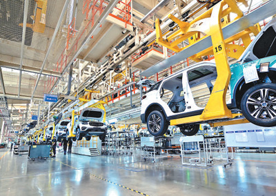 Photo taken on Aug. 3, 2022 shows a production line at Chinese automaker Geely’s plant in Baoji city, northwest China’s Shaanxi Province. (People’s Daily Online/Zhang Liyang)
