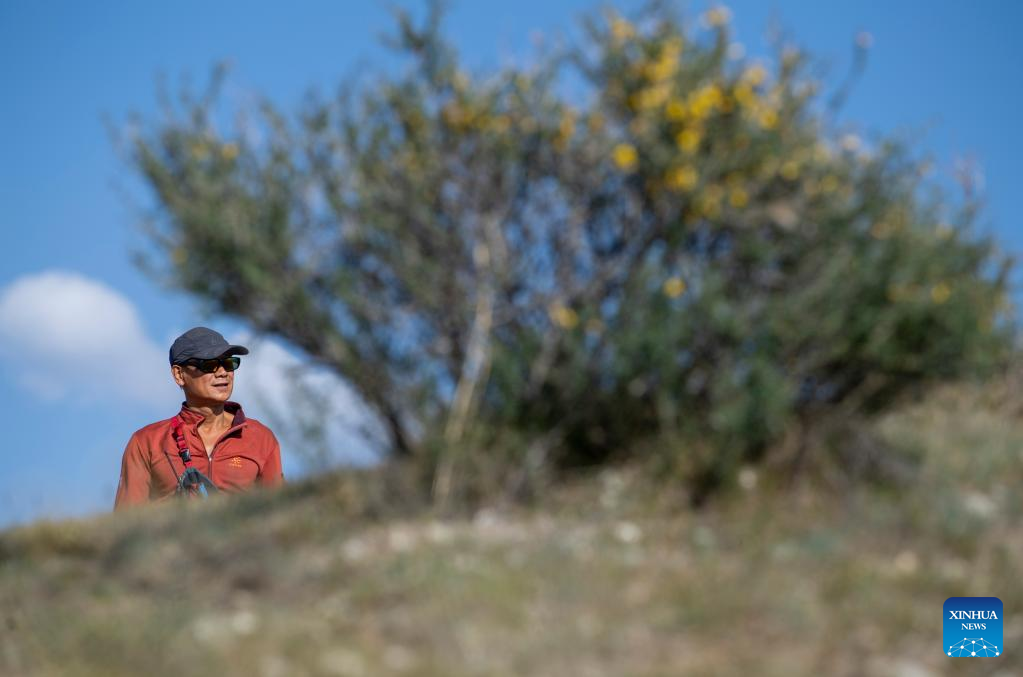 Chen Ruifeng climbs up to his takeoff field in Jimsar County, northwest China's Xinjiang Uygur Autonomous Region, May 21, 2022. Born in Xinjiang, 52-year-old Chen Ruifeng is a paragliding amateur. He says he feels like having his own wings when the paraglider opens. In 2016, Chen Ruifeng started to practice paragliding. Later on, he joined a local club and received his flying certificate after training. As an outdoor enthusiast, he also engages himself in trail running, mountaineering and ice climbing. In his opinions, the unique terrain of Xinjiang, such as mountains, steppes and rivers, has its own charms and thus makes here a heaven for outdoor activities. "As long as I can, I will fly higher and discover more the beauty of Xinjiang," Chen says. (Xinhua/Hu Huhu)