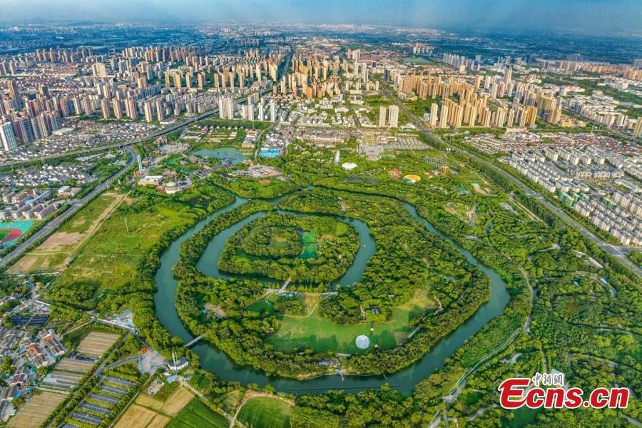 Aerial view shows the Yanchen City Ruins Park, the most well preserved ruin site of the Spring and Autumn Period (770B.C-221B.C)in China, Changzhou, east China's Jiangsu Province, Aug. 7, 2022. (Photo: China News Service/Yangbo)