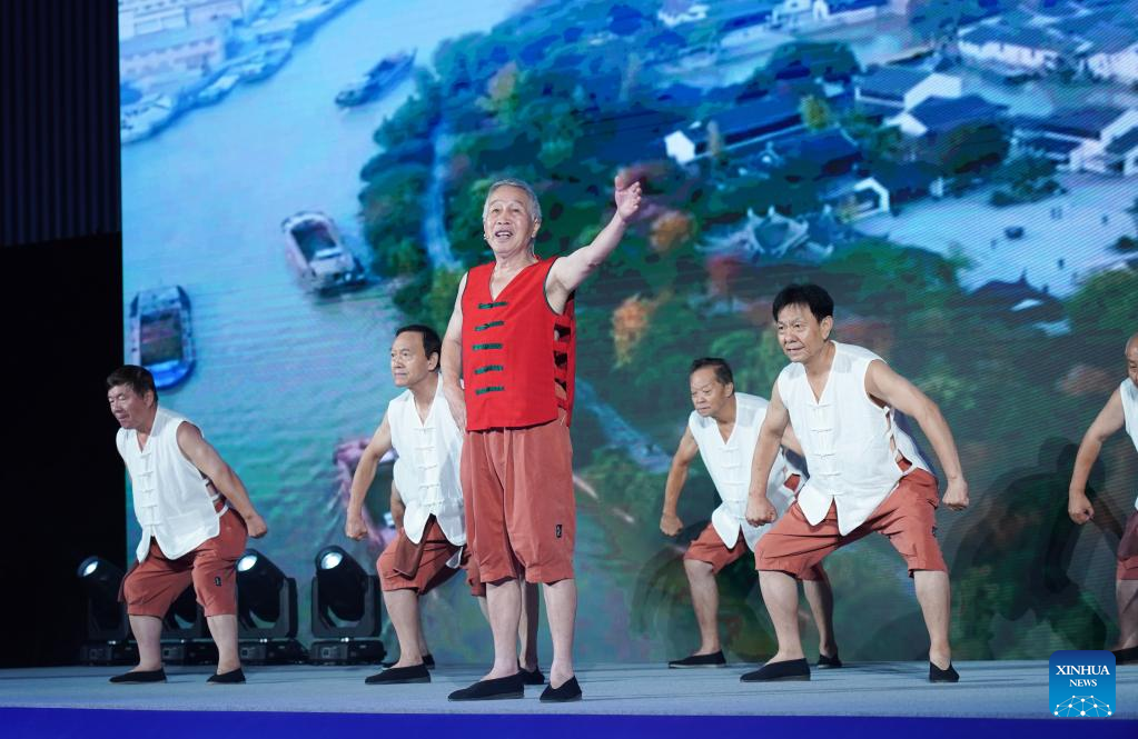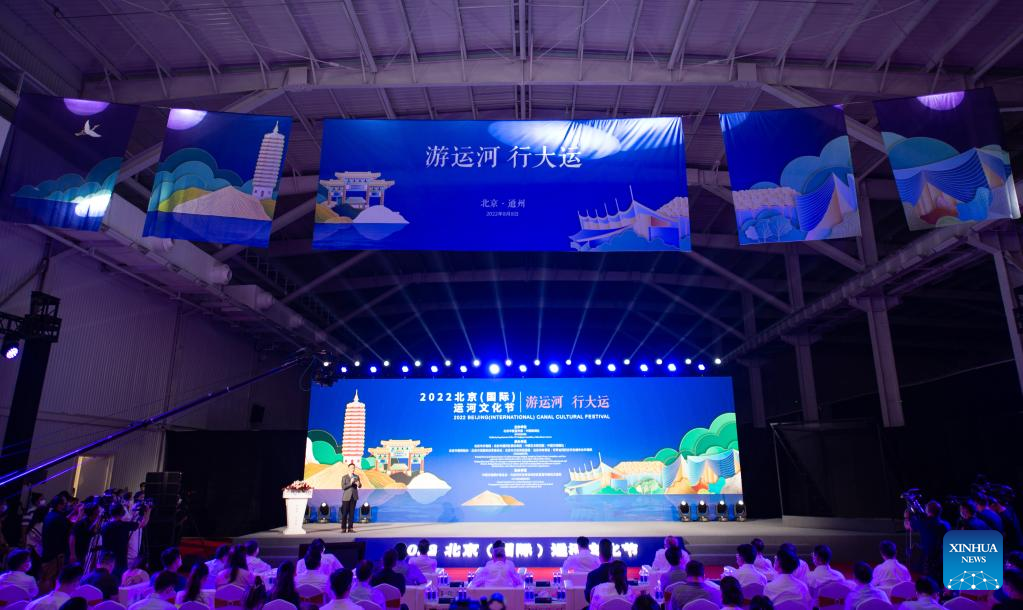 Photo taken on Aug. 8, 2022 shows the opening ceremony of the 2022 Beijing (International) Canal Cultural Festival in Tongzhou District of Beijing, capital of China. The 2022 Beijing (International) Canal Cultural Festival kicked off in Tongzhou District of Beijing on Monday. With a history of about 2,500 years, the Grand Canal is a vast waterway connecting the northern and southern parts of China. (Xinhua/Chen Zhonghao)