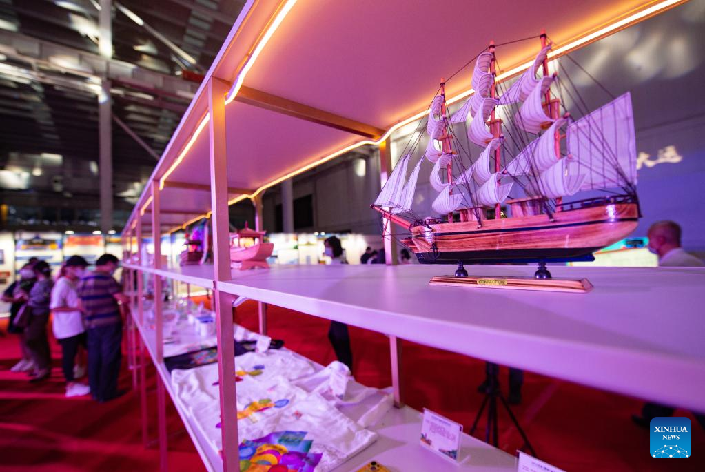 Visitors view exhibits during the opening ceremony of the 2022 Beijing (International) Canal Cultural Festival in Tongzhou District of Beijing, capital of China, Aug. 8, 2022. The 2022 Beijing (International) Canal Cultural Festival kicked off in Tongzhou District of Beijing on Monday. With a history of about 2,500 years, the Grand Canal is a vast waterway connecting the northern and southern parts of China. (Xinhua/Chen Zhonghao)