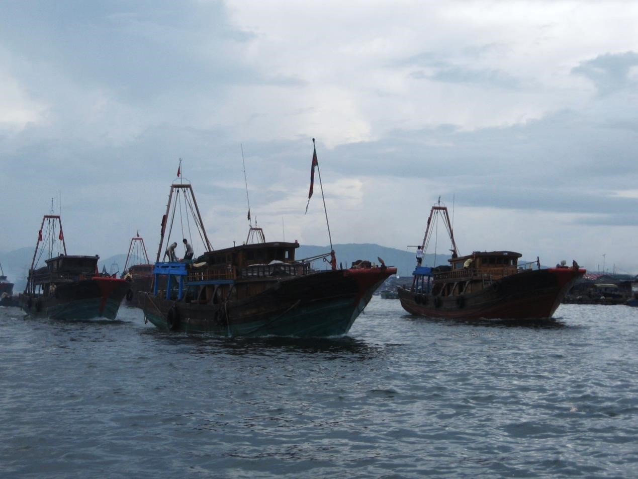 In Xincun township of Lingshui Li autonomous county in the southernmost province of Hainan, there are several "floating villages" inhabited by the Tanka people. At present, the township is home to 456 seafood farms and 1,475 junks. There are over 5,000 Tankas living and working on the sea in the township.