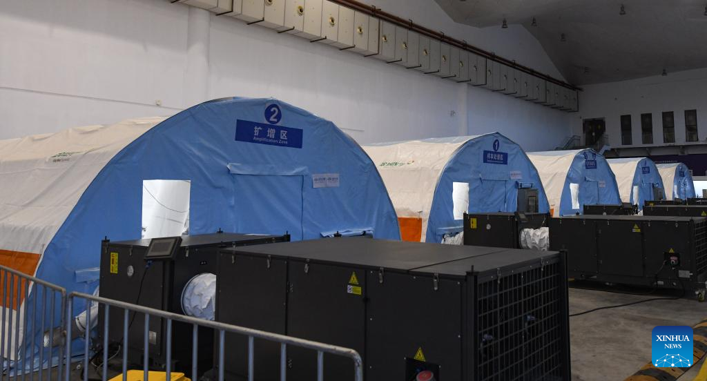 All the inflatable labs set at Hainan International Convention and Exhibition Center have been put to use on Tuesday to help fight a recent COVID-19 resurgence in the province.
