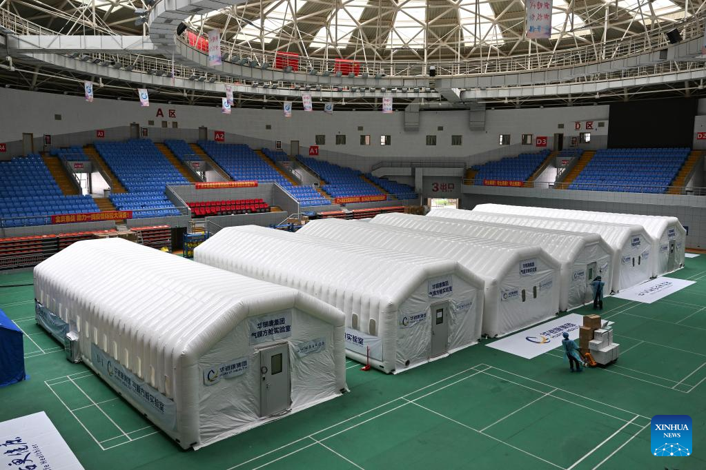 Photo taken on Aug. 11, 2022 shows inflatable labs built with aid from south China's Guangdong Province, in Sanya, south China's Hainan Province.