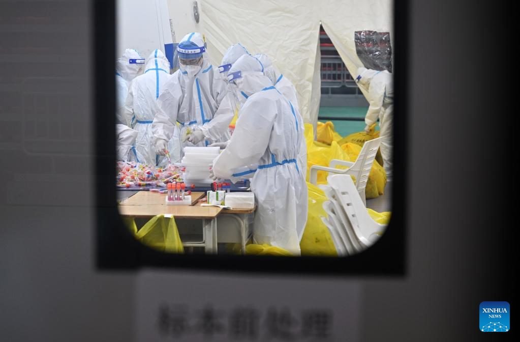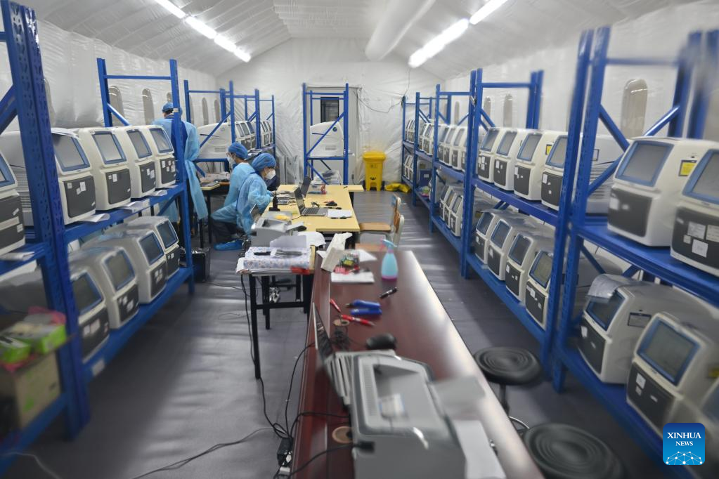 Medics from south China's Guangdong Province test nucleic acid samples in Sanya, south China's Hainan Province, Aug. 11, 2022.