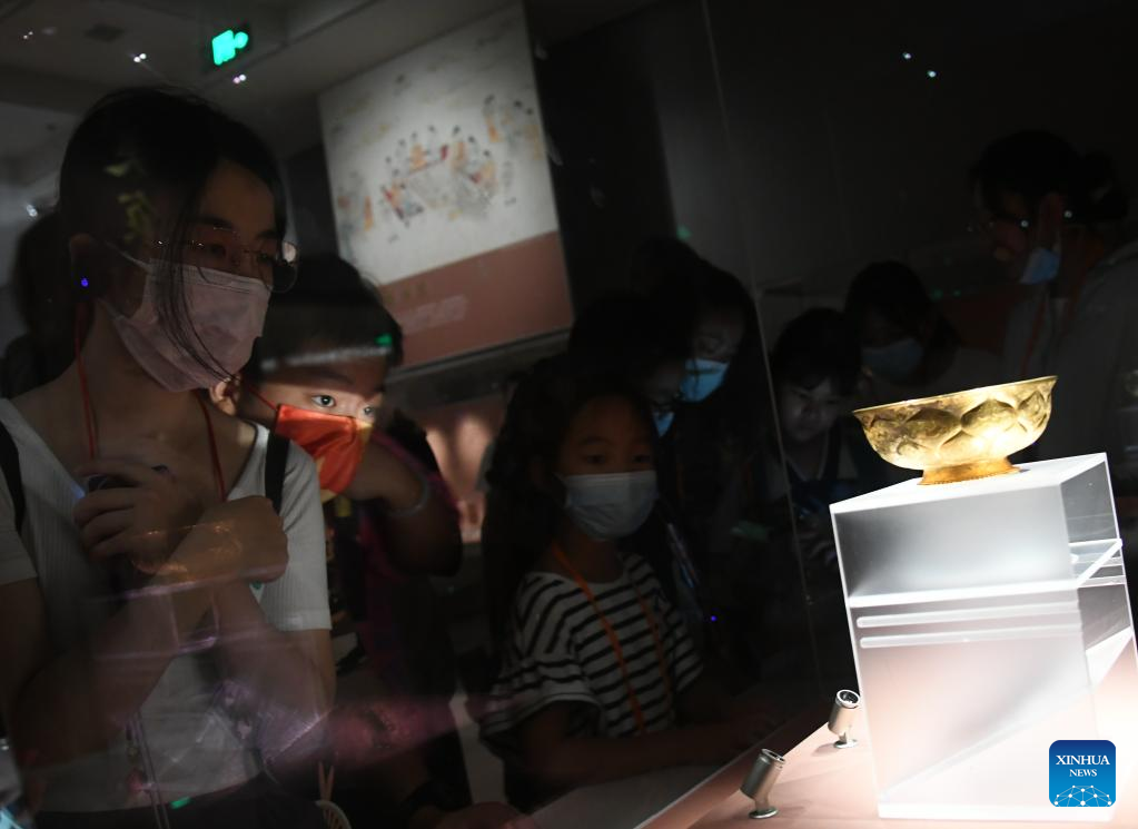 A girl visits the Shaanxi History Museum in Xi'an, northwest China's Shaanxi Province, Aug. 11, 2022.