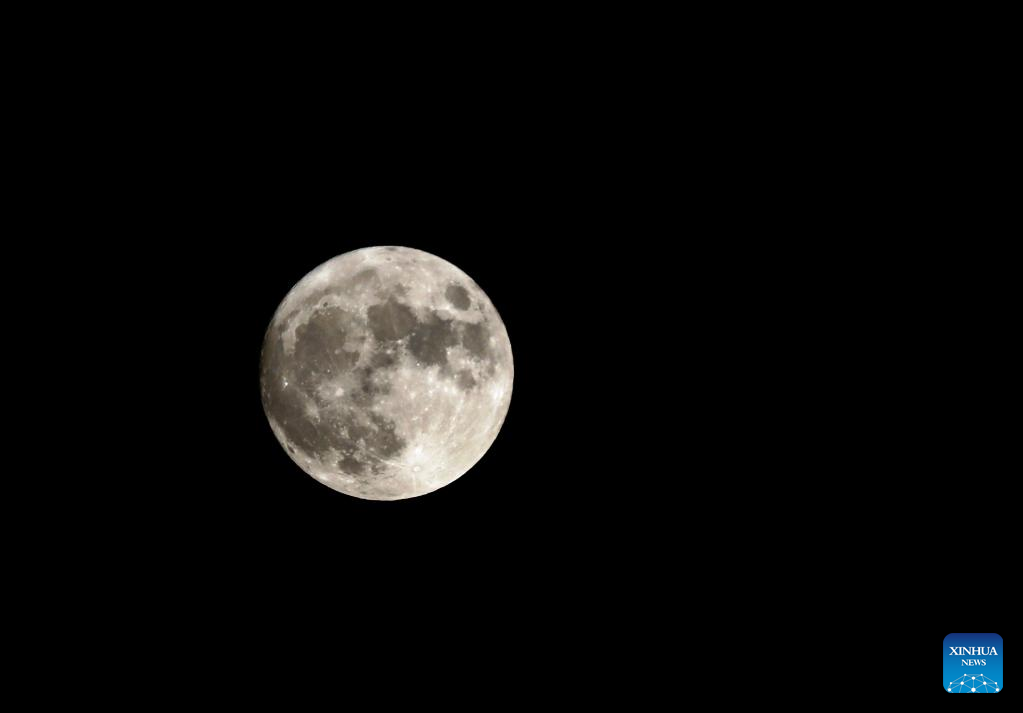 A full moon rises in the sky above Zagreb, Croatia, Aug. 11, 2022. (Photo by Marko Lukunic/PIXSELL via Xinhua)
