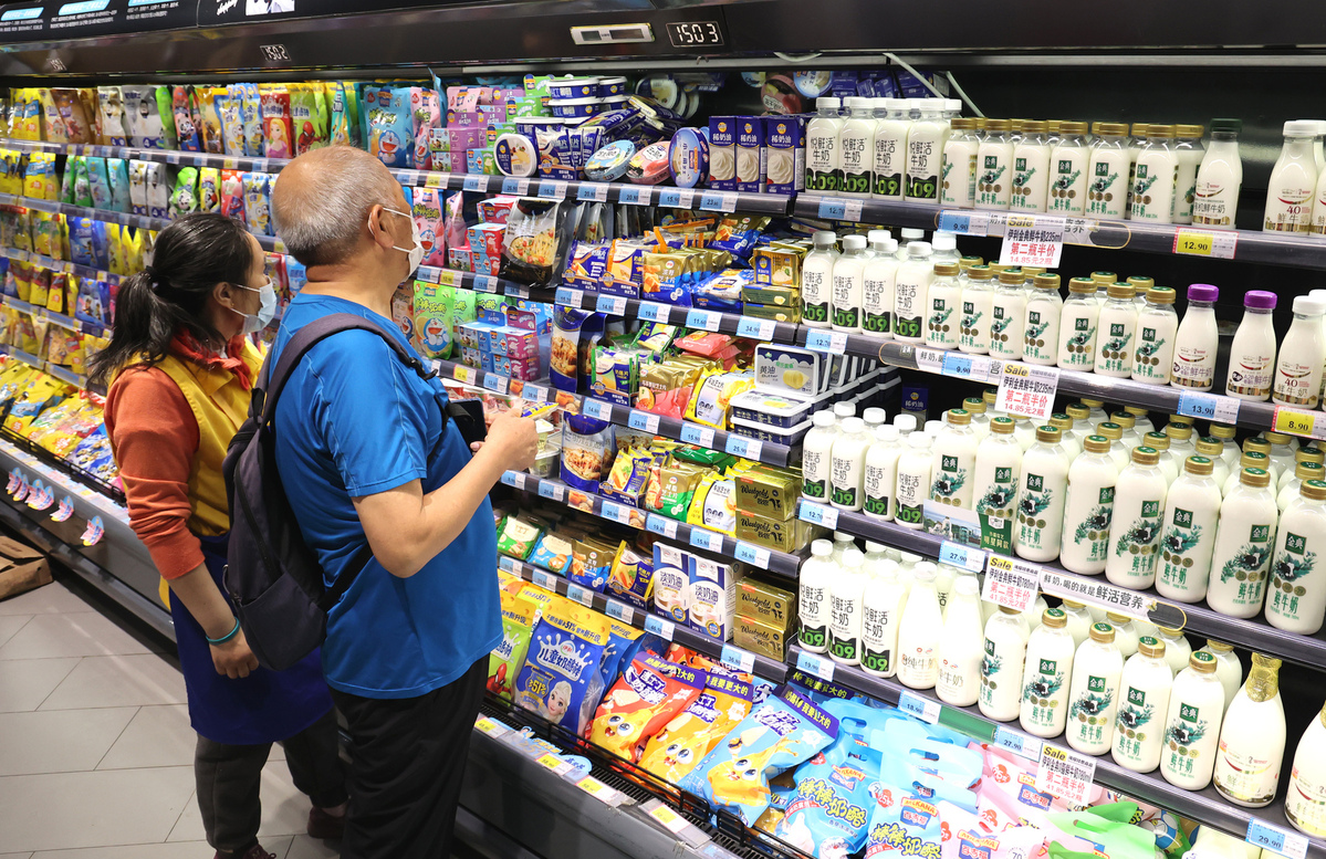 Consumers select products at a supermarket in Lianyungang, Jiangsu province. [Photo/Xinhua]
