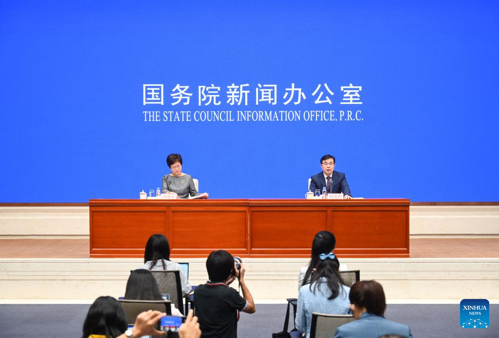 National Bureau of Statistics (NBS) spokesperson Fu Linghui (R) attends a press conference held by the State Council Information Office on China's multiple key economic indicators in July, in Beijing, capital of China, Aug. 15, 2022. (Xinhua/Chen Yehua)
