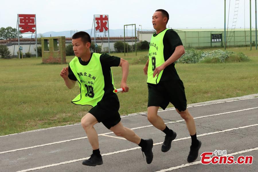 Armed police officers attend a 4x100 relay competition in northwest China's Qinghai Province. (Photo: China News Service/Zhang Suo)