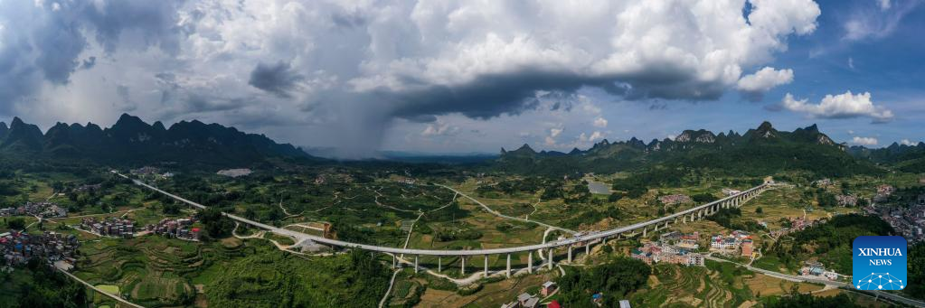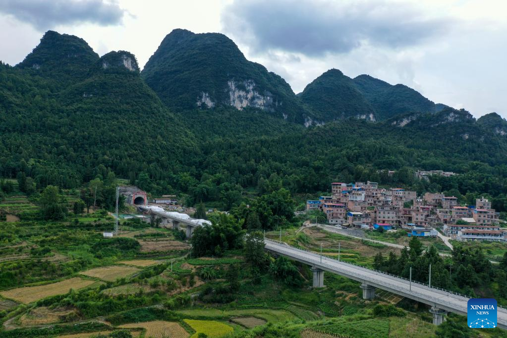 The Guiyang-Nanning high-speed railway, with a maximum speed of 350 km per hour, is expected to go into service in 2023. (Xinhua/Cao Yiming)
