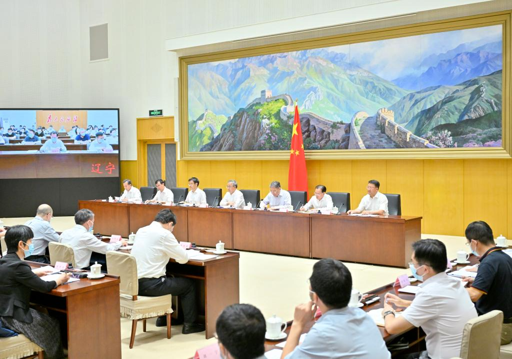 Chinese Vice Premier Hu Chunhua, also a member of the Political Bureau of the Communist Party of China Central Committee, attends a teleconference on expanding consumption and further stabilizing foreign trade and foreign investment in Beijing, capital of China, Aug. 17, 2022. (Xinhua/Gao Jie)