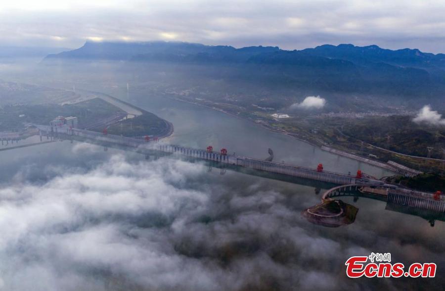 The Three Gorges Dam, the world's largest hydropower project, increases water discharge to help ease a severe drought in the middle reaches of the Yangtze River, Aug. 16, 2022. (Photo: China News Service/Zheng Jiayu)