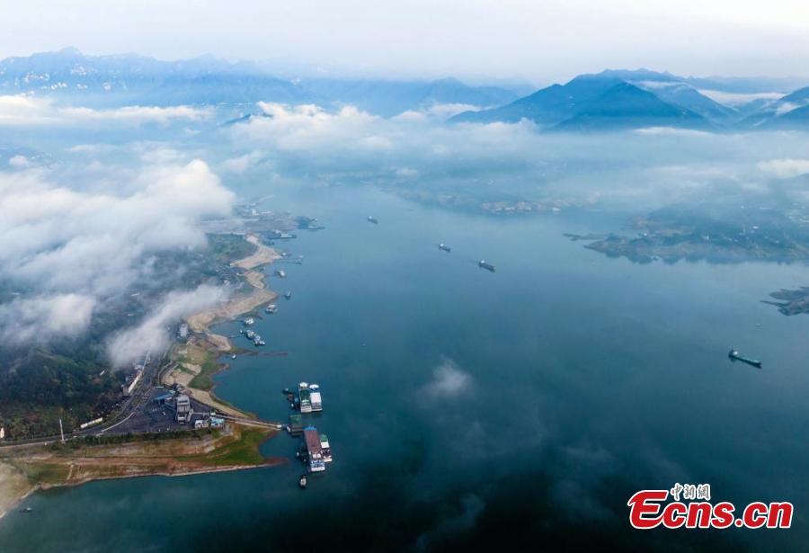 Ships sail on the upper reaches of the Yangtze River in Zigui county of Yichang city, central China's Hubei Province, Aug. 16, 2022. (Photo: China News Service/Zheng Jiayu)