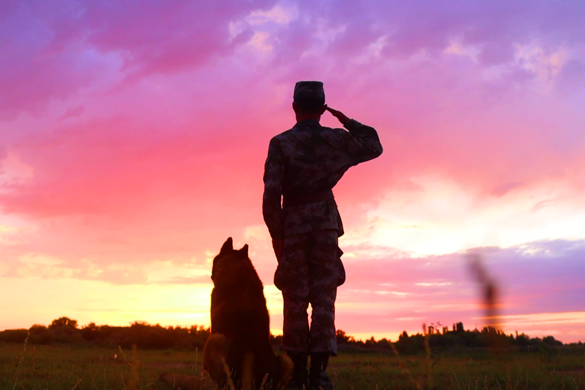 A photo shows a border soldier saluting to Yanlong, a military dog, in Altay prefecture in the Xinjiang Uygur autonomous region. [Photo provided to chinadaily.com.cn]