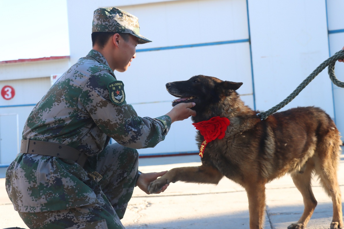 A military dog named Yanlong retired recently after eight years of service in a border detachment in Altay prefecture in the Xinjiang Uygur autonomous region.