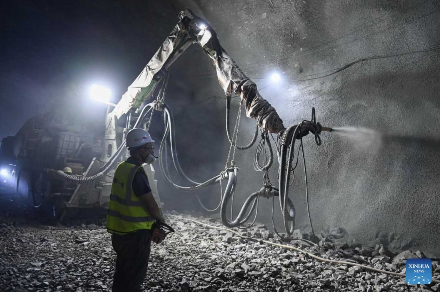 A constructor works at the Hukou tunnel of the Hangzhou-Wenzhou railway in east China's Zhejiang Province, Aug. 19, 2022. The Hukou tunnel of the high-speed railway linking Hangzhou and Wenzhou cities was drilled through on Friday. (Xinhua/Huang Zongzhi)