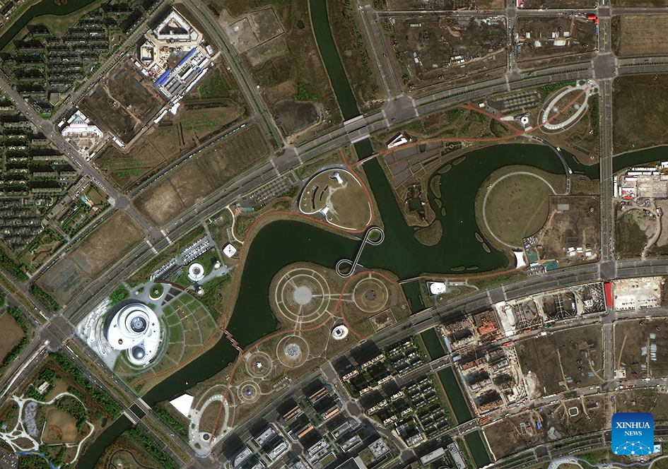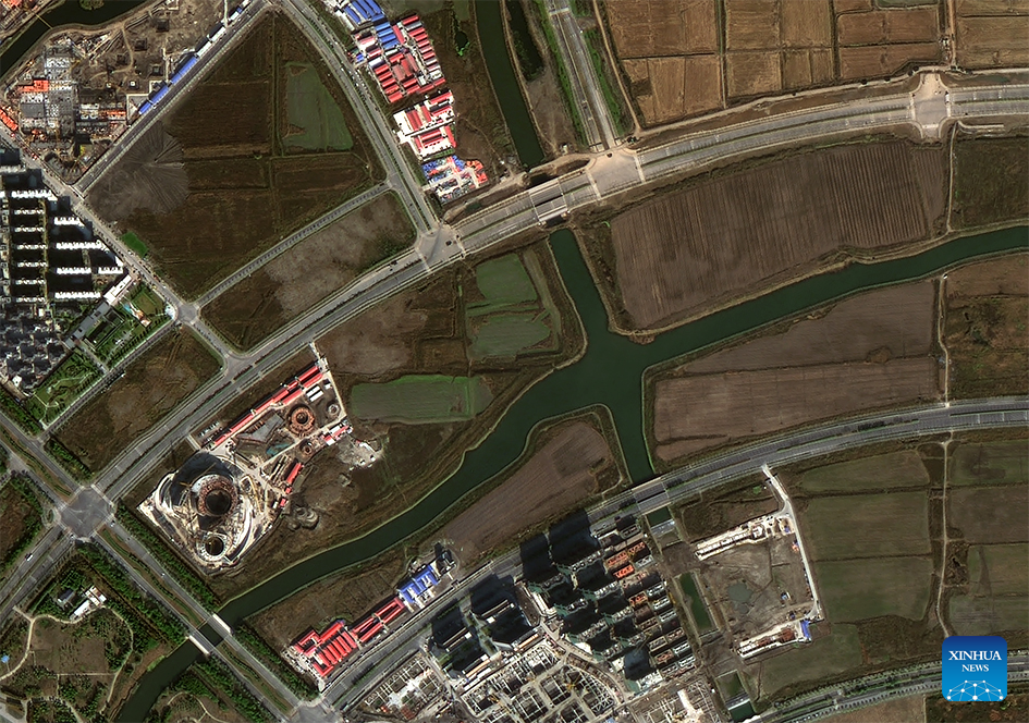 Image captured by a Gaofen series satellite on March 3, 2022 shows the Shanghai Astronomy Museum in Lingang new area of the China (Shanghai) Pilot Free Trade Zone in east China's Shanghai. Saturday marked the 3rd anniversary of the launching of Lingang new area. A series of remote sensing images captured by China's Gaofen series satellites record the changes of Lingang new area from 2017 to 2022. (Xinhua)