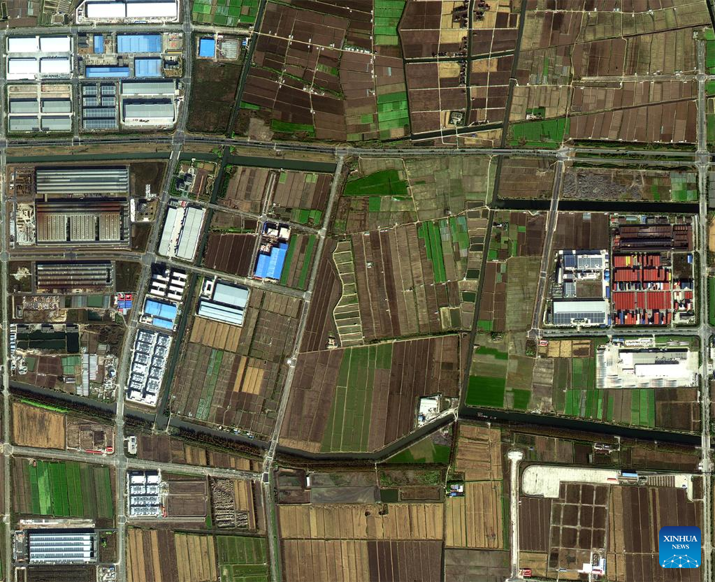 Image captured by a Gaofen series satellite on Dec. 12, 2017 shows the area where the Tesla Gigafactory is located in Lingang new area of the China (Shanghai) Pilot Free Trade Zone in east China's Shanghai. Saturday marked the 3rd anniversary of the launching of Lingang new area. A series of remote sensing images captured by China's Gaofen series satellites record the changes of Lingang new area from 2017 to 2022. (Xinhua)