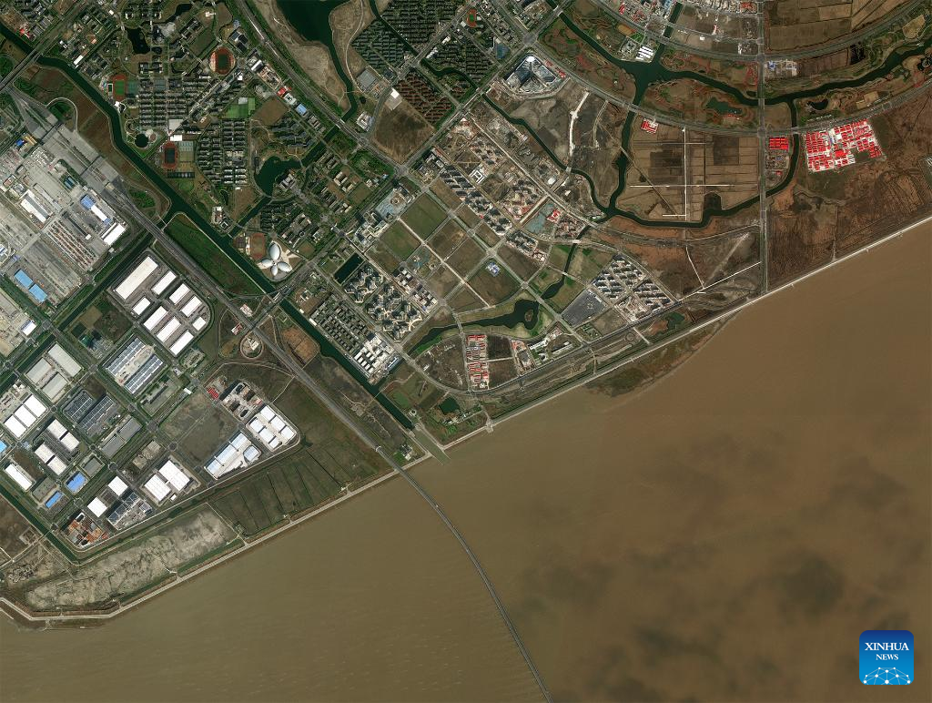 Image captured by a Gaofen series satellite on March 3, 2022 shows the Lingang Sci-tech City in Lingang new area of the China (Shanghai) Pilot Free Trade Zone in east China's Shanghai. Saturday marked the 3rd anniversary of the launching of Lingang new area. A series of remote sensing images captured by China's Gaofen series satellites record the changes of Lingang new area from 2017 to 2022. (Xinhua)