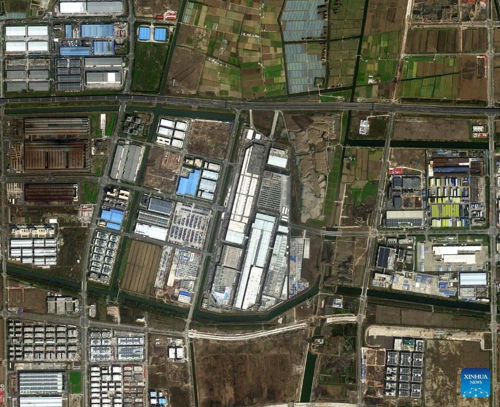 Image captured by a Gaofen series satellite on March 3, 2022 shows the Tesla Gigafactory in Lingang new area of the China (Shanghai) Pilot Free Trade Zone in east China's Shanghai. Saturday marked the 3rd anniversary of the launching of Lingang new area. A series of remote sensing images captured by China's Gaofen series satellites record the changes of Lingang new area from 2017 to 2022. (Xinhua)
