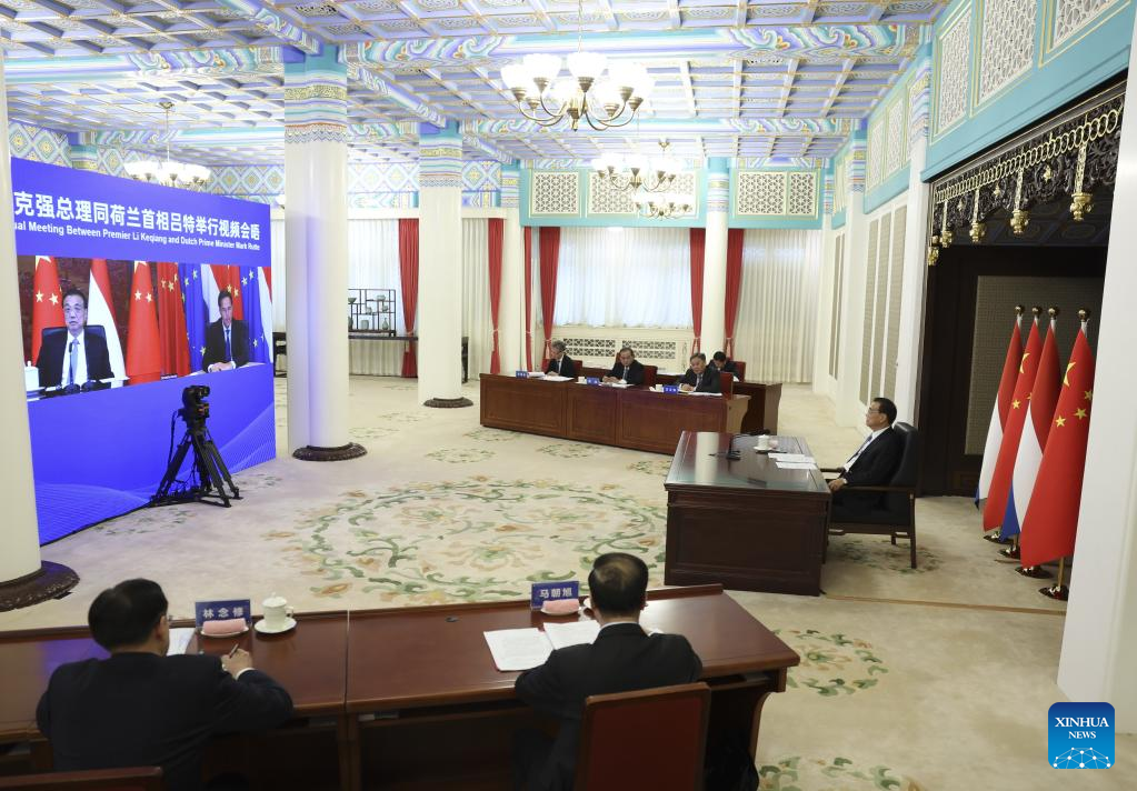 Chinese Premier Li Keqiang meets virtually with Dutch Prime Minister Mark Rutte in Beijing, capital of China, Aug. 23, 2022. (Xinhua/Ding Lin)