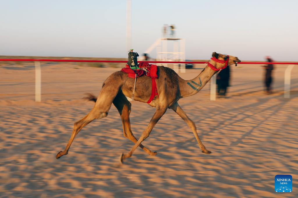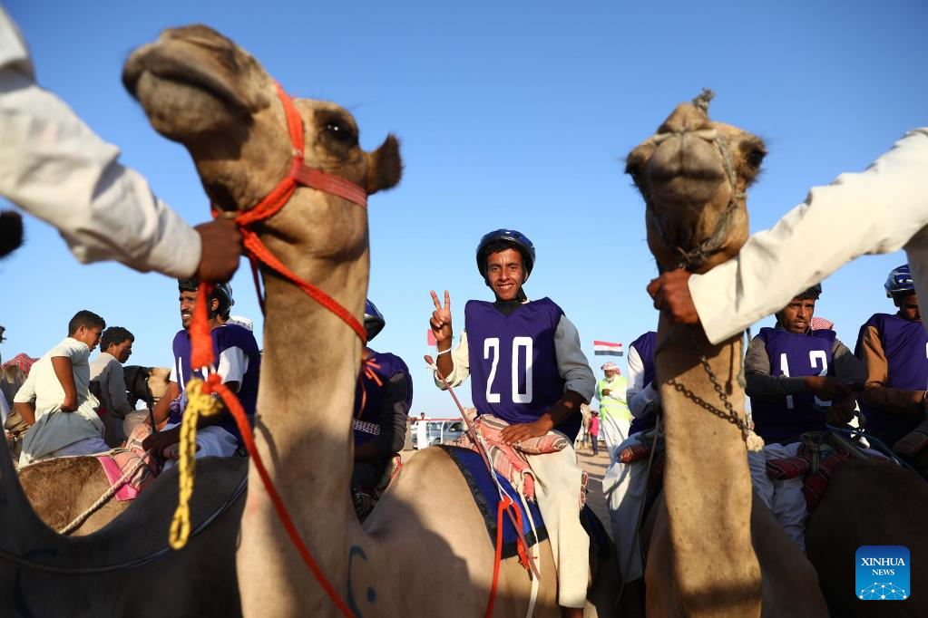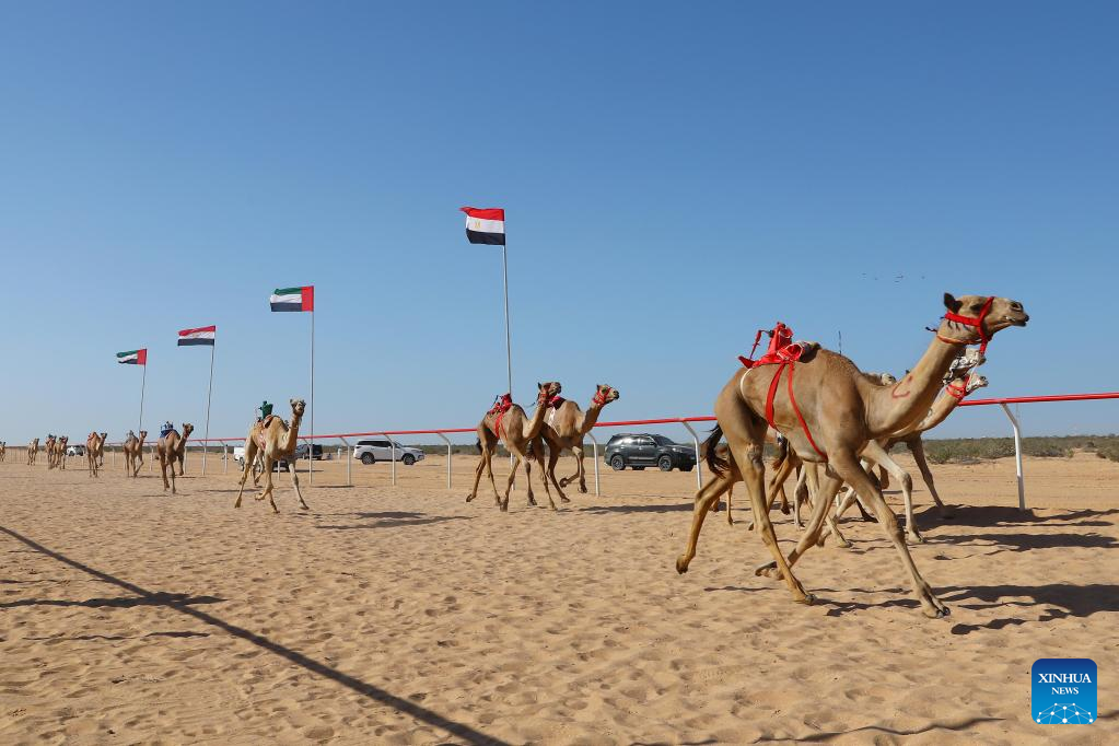 Participants compete during a camel race in El Alamein City, Egypt, Aug. 23, 2022. (Xinhua/Ahmed Gomaa)