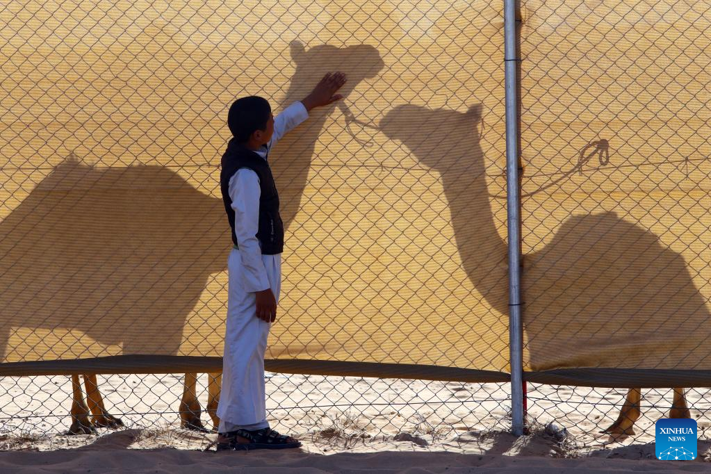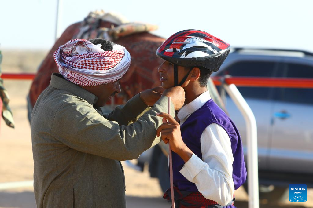 A participant gets prepared before a camel race in El Alamein City, Egypt, Aug. 23, 2022. (Xinhua/Ahmed Gomaa)