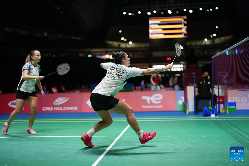Julie Macpherson (R)/Ciara Torrance of Scotland compete during the women's doubles second round match against Zhang Shuxian/Zheng Yu of China at the BWF World Championships 2022 in Tokyo, Japan, Aug. 24, 2022. (Xinhua/Zhang Xiaoyu)
