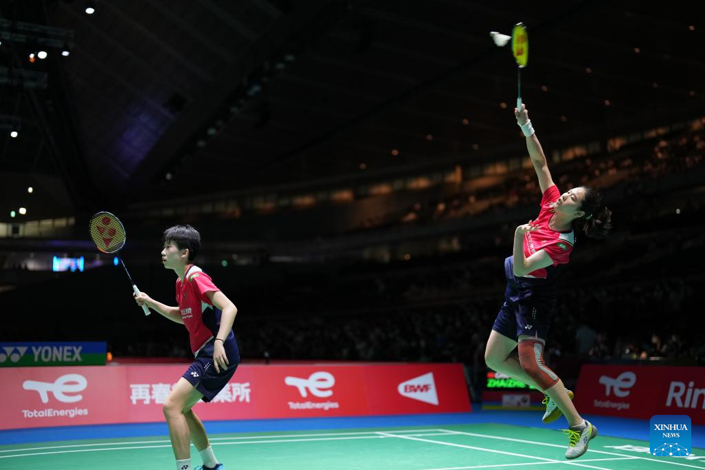 Julie Macpherson/Ciara Torrance (L) of Scotland compete during the women's doubles second round match against Zhang Shuxian/Zheng Yu of China at the BWF World Championships 2022 in Tokyo, Japan, Aug. 24, 2022. (Xinhua/Zhang Xiaoyu)