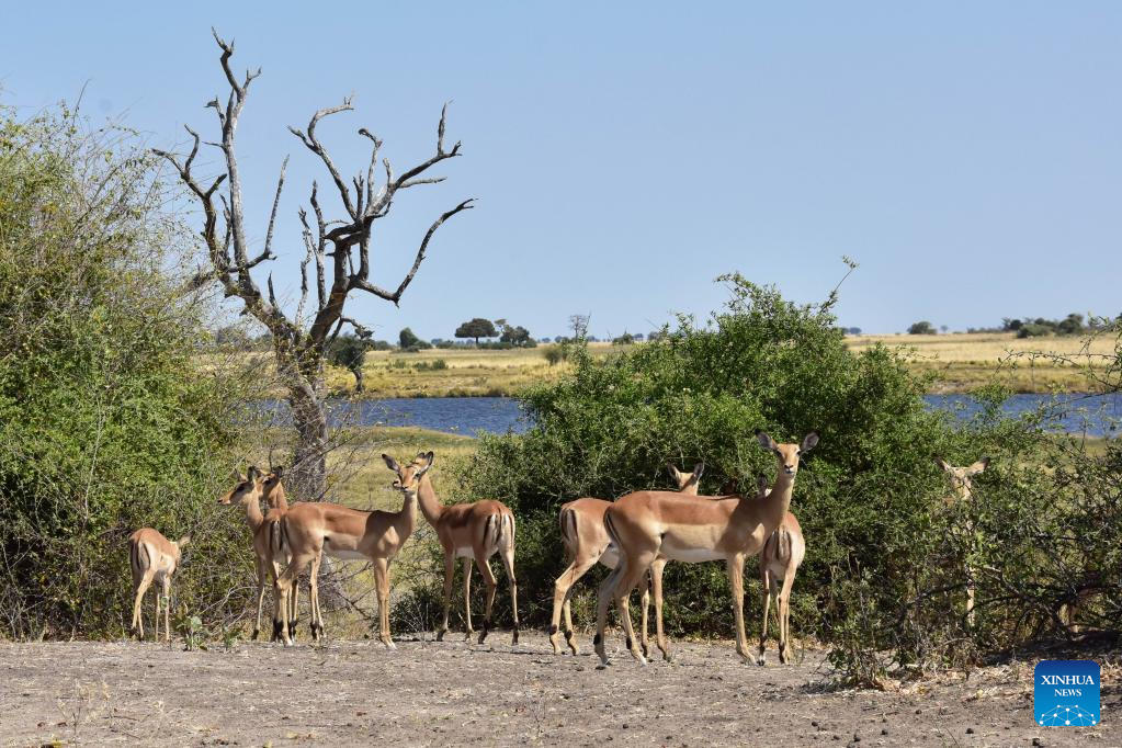 Antelopes are seen at Chobe National Park, northern Botswana, Aug. 21, 2022. (Xinhua/Teng Junwei)