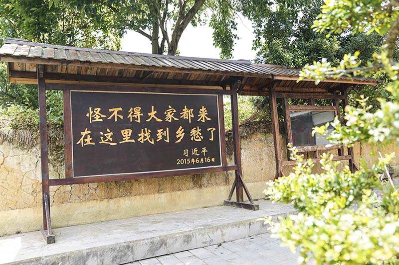 Photo taken on July 23, 2022, shows words that read as “No wonder so many people come here. Their homesickness is relieved here,” words that were uttered by Chinese President Xi Jinping while visiting Huamao Village in Zunyi, southwest China’s Guizhou Province. Xi made his visit to Huamao Village on June 16, 2015. (People’s Daily Online/Peng Yukai)