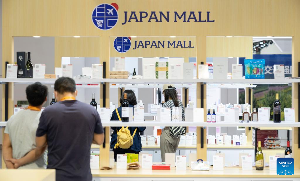 Photo taken on Aug. 28, 2022 shows a booth of the 2022 China International Fair for Trade in Services (CIFTIS) at the China National Convention Center in Beijing, capital of China. The 2022 CIFTIS will be held at the China National Convention Center and the Shougang Park in Beijing from Aug. 31 to Sept. 5. (Xinhua/Han Xu)