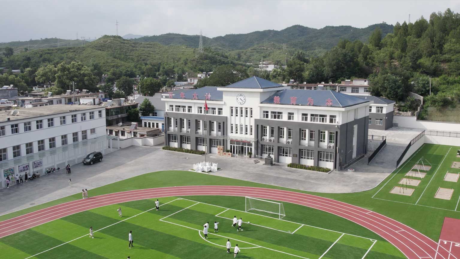 Aerial phototaken on July 26, 2022 shows students playing on the playground at the Bayi primary school in Fuping County, north China’s Hebei Province. (People’s Daily Online / Liu Ning)