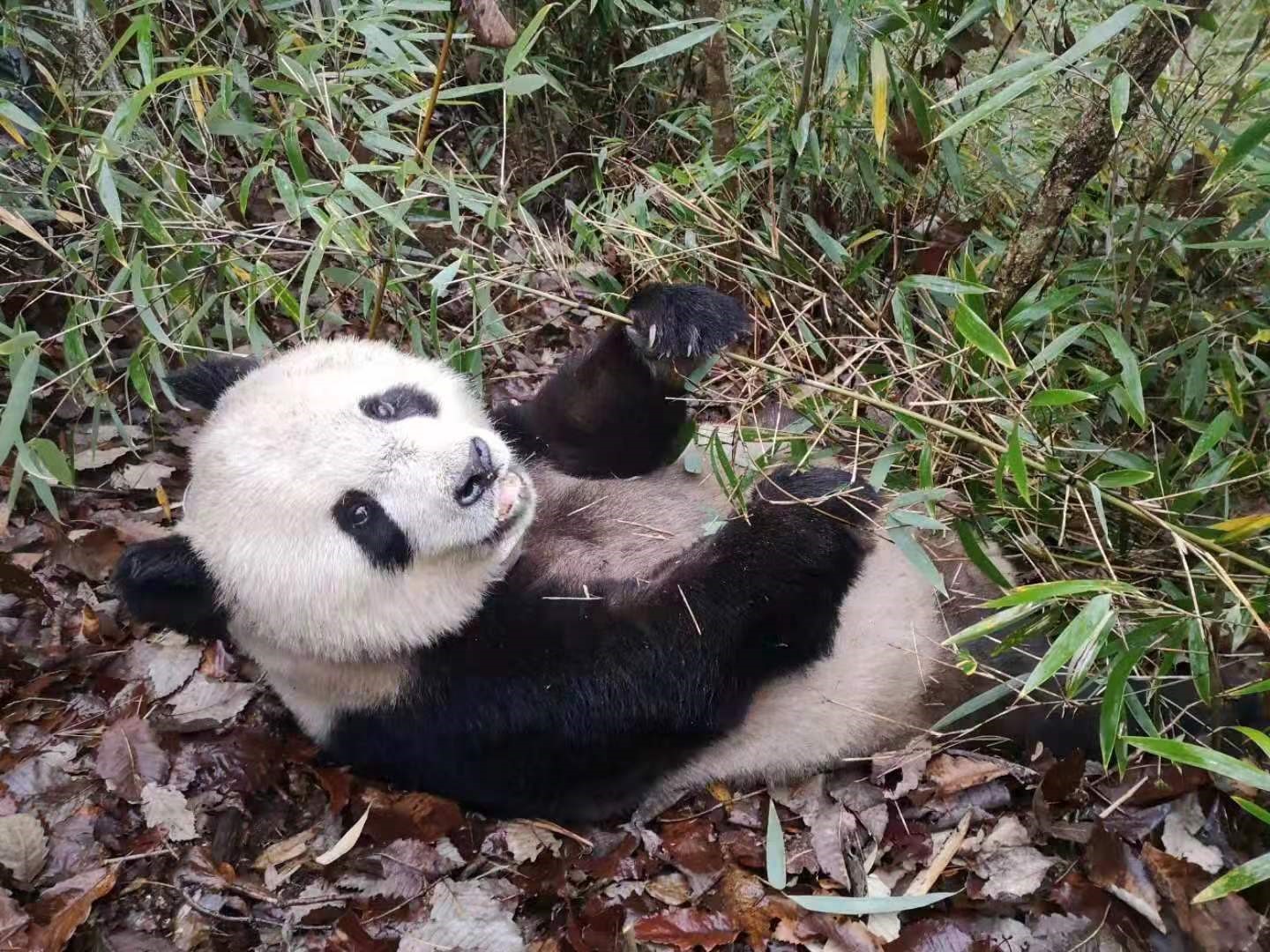 Yimao enjoys some bamboo leaves at the Shaanxi Foping National Nature Reserve. (Photo/Provided by Chen Yuanyu)