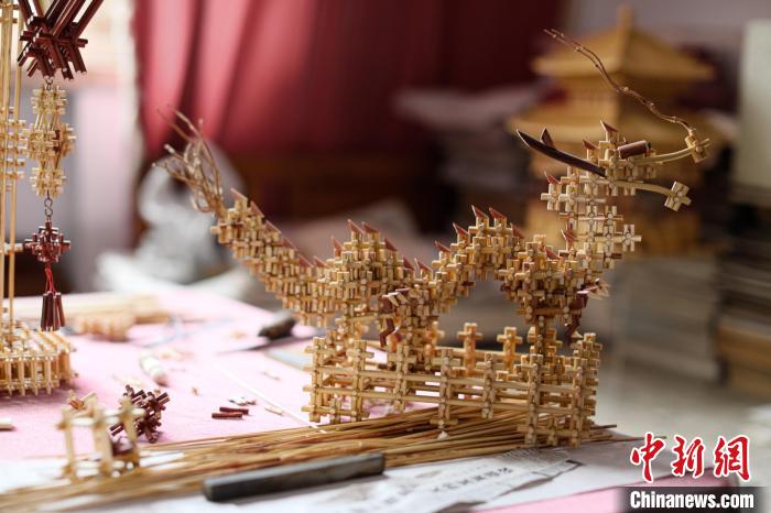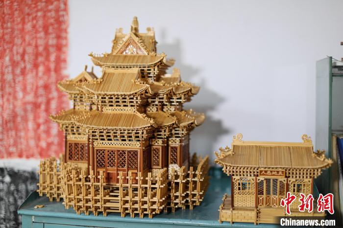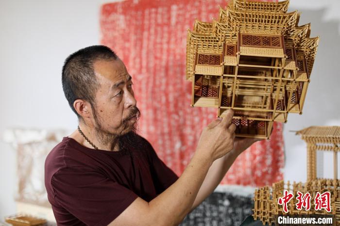 Ancient buildings, flowers, birds, insects and human portraits are the main themes used in making Zhao's sorghum straw works. Zhao started to learn the craft 30 years ago from a folk artist. One of his most renowned works is called "Watchtower of the Forbidden City," which he finished in one year.